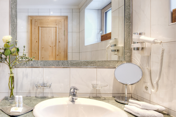 The sophisticated amenities include a cosy 1.20 m king-size single bed, a comfortable seating area as well as TV, Wi-Fi, minibar and safe. The bathroom is furnished with a shower, WC and hairdryer. Bathrobes and free toiletries are also provided, so you can enjoy the in-house wellness area to the fullest. We do not allow pets to ensure a great stay in our rooms for people with allergies.