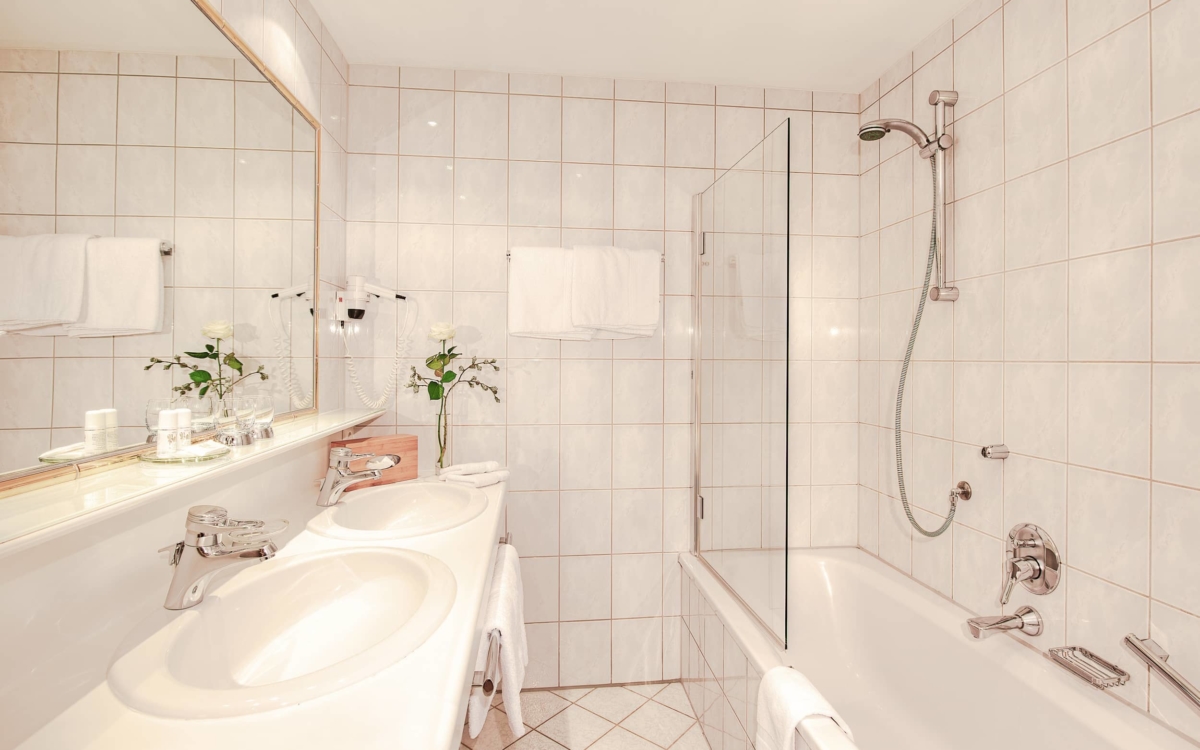 Standard amenities include an extra-large double room and a comfortable seating area as well as TV, Wi-Fi, minibar and safe. The bathroom is furnished with a shower or bathtub, WC and hairdryer. Bathrobes and free toiletries are also provided, so you can enjoy the in-house wellness area to the fullest. We do not allow pets to ensure a great stay in our rooms also for people with allergies.